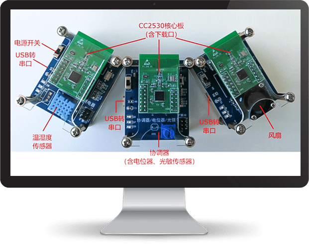 通過分布在教室內(nèi)的無線傳感器節(jié)點和無線控制節(jié)點,對教師內(nèi)的環(huán)境進(jìn)行智能的管理,并可通過觸控屏幕、其他平臺的瀏覽器網(wǎng)頁,對教室環(huán)境進(jìn)行實時監(jiān)測和控制。