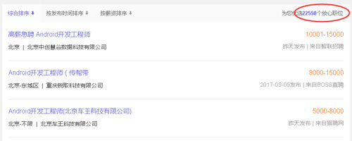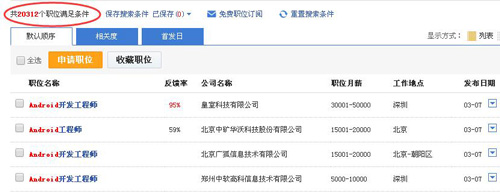 各大招聘網站每天有2萬多個Android相關職位,遠超其他技術崗位:
