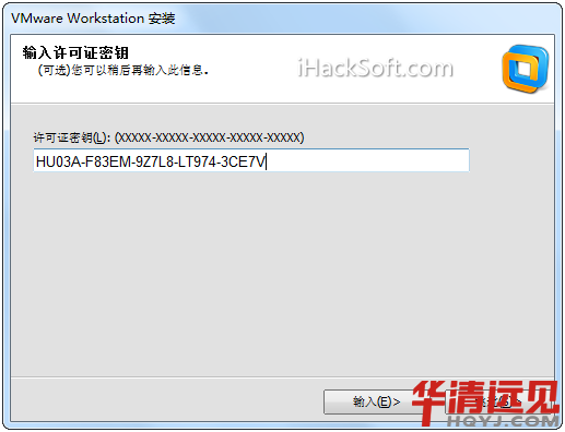 后一步要求輸入許可證密鑰,本站提供親測(cè)可用的注冊(cè)密鑰,授權(quán)形式為批量,并且永不過(guò)期,即永久激活,注冊(cè)碼地址://www.ihacksoft.com/vmware-workstation-10-0.html