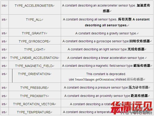 我們?cè)贏ndroid中經(jīng)常使用一些傳感器,下面是API定義的幾個(gè)傳感器常量: