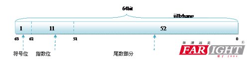 而雙精度浮點數的存儲和單精度的存儲大同小異,不同的是指數部分和尾數部分的位數。所以這里不再詳細的介紹雙精度的存儲方式了,只將120.5的后存儲方式圖給出,大家可以仔細想想為何是這樣子的