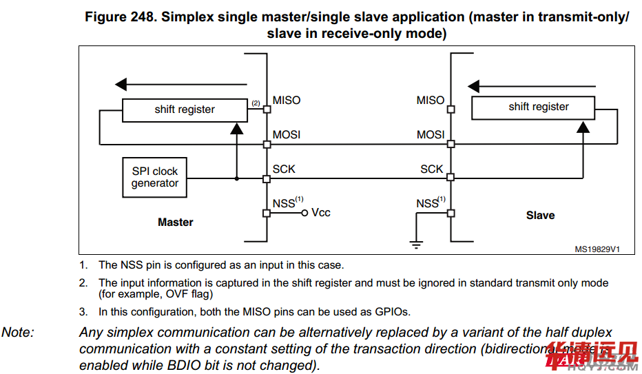 看見了沒有??這樣也是可以的!這就有點像IIC了,但是,但是協議是不一樣的!主機的MOSI與從機的MISO接口相連!既然是半雙工,那么就意味著它不能同時發送和接收數據了,所以,主機應該是先發完數據,然后再讀取數據,呵呵!!!這樣的通信方式,到目前為止,俺遇到的傳感器等等設備也是沒用過哇。不過不管它!既然支持,那么有機會就要使用它!嘿嘿!