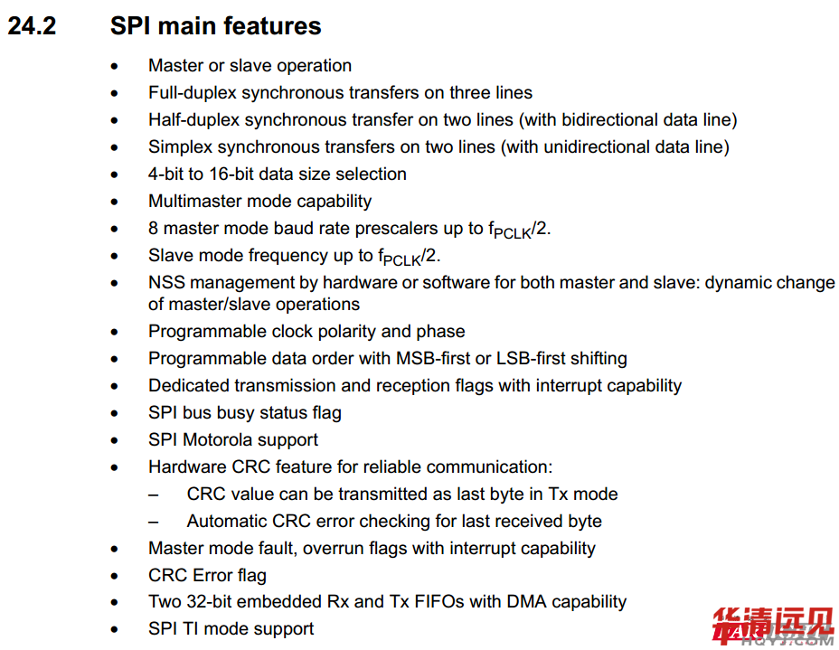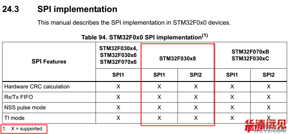 當然,這其實只是SPI通信硬件接口的一部分,而且是基礎的部分。那么現在就STM32F030的硬件SPI資源進行講解。打開參考手冊《STM32F030x468C and STM32F070x6B advanced ARM®-based 32-bit MCUs.pdf》