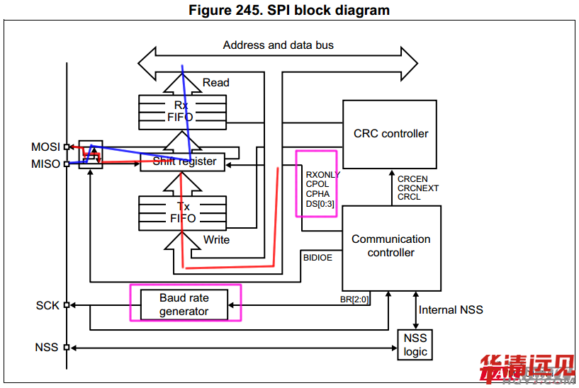 那么其實在這個SPI“內臟”中,還包含了CRC校驗控制器和同學控制器,顧名思義肯定是用來校驗和控制SPI通了的拉!嘿嘿!