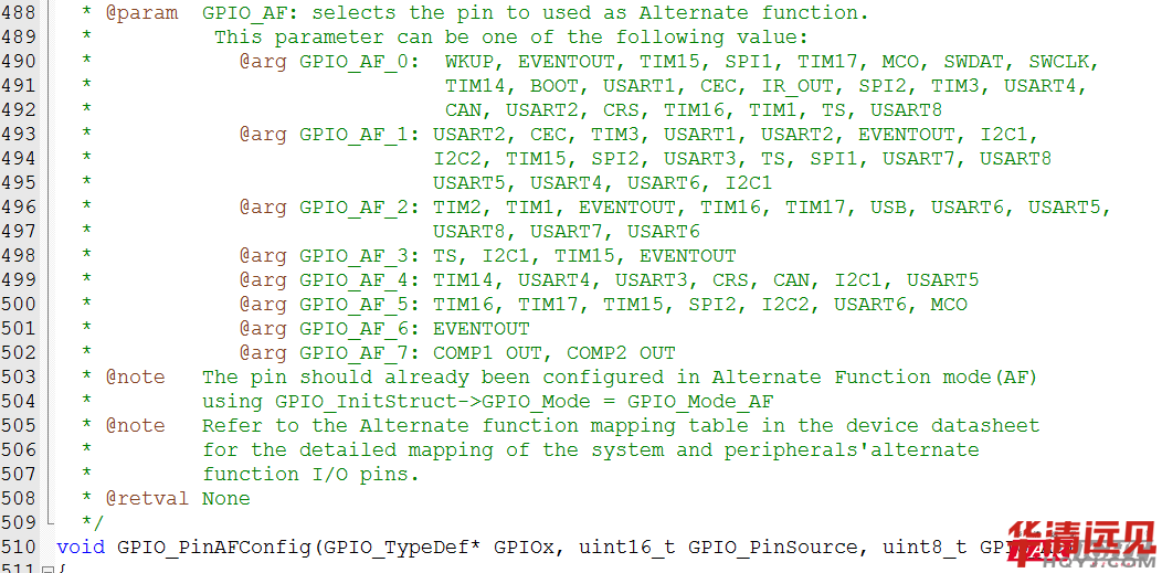 2.打開GPIO端口的復用功能,這個從函數源碼來講應該是很好理解的!函數源碼參數說明如下: