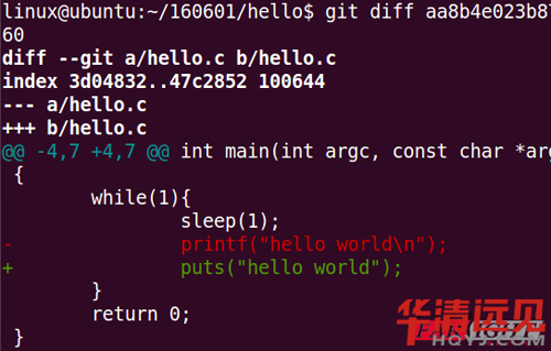 可查看修改內(nèi)容---為修改前文件,+++為修改后文件,可看到本次修改為將printf換成了