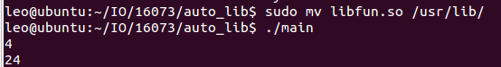 gcc main.c -o main -lfun -L ../auto_lib/ 庫在上一級目錄的auto_lib路徑下面
