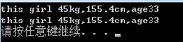 cout << "this girl " << weight << "kg," << high << "cm,age" << age <<"home"<