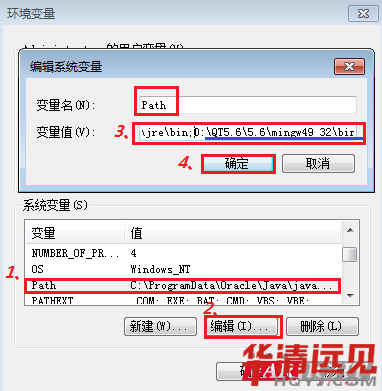 找到環境變量Path,如果Path的變量值中已經有其他的值,要注意在后加上英文的分號,然后將QT的安裝路徑下找到mingw49_32\bin,將這個路徑添加到Path中。