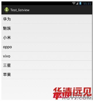 本程序通過繼承ListActivity的方法來創建一個列表ListView,借助于適配器ArrayAdapter來使定義的數組中的數據呈現出來。