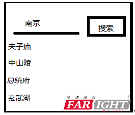 上圖是一個程序運行結果的簡圖,該程序可以使用戶快速的了解各城市的旅游景點,例如:用戶在EditText上輸入想去的城市(南京),之后點擊按鈕Button,后在屏幕下方獲得當地的旅游景點。