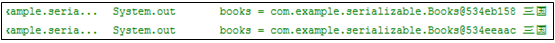 但是當手動指定serialVersionUID后,如果將類的結構改變之后,反序列化依舊會成功,并且將大程度的恢復數據。還是上面那個例子,先進行序列化,然后在Books類中增加一個成員變量:
