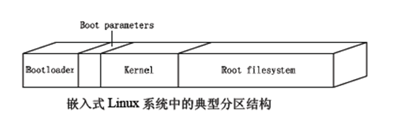 所以Bootloader執行時要加載Linux內核,內核掛載根文件系統rootfs。一般在嵌入式Linux系統中,Flash設備中需要包含以上幾部分,如下圖: