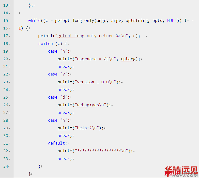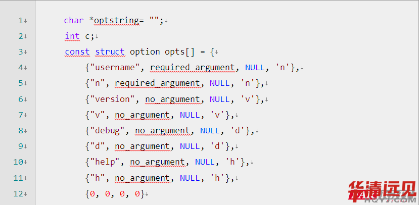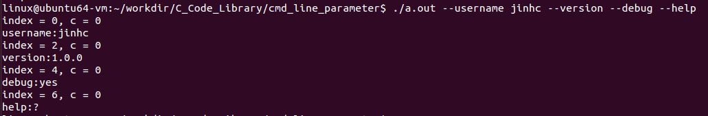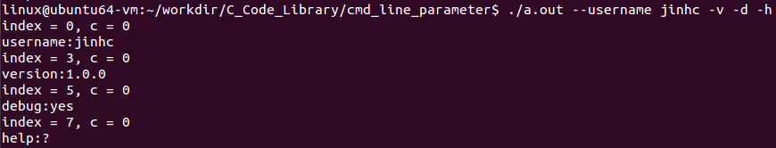 如果使用如上的方式是將得到選項(長選項或短選項)在結構體數組中的位置,并將該值存放在index中。在while中判定選項的下標即可,如果需要獲得參數中傳遞的值,則將該值保存到optarg中。