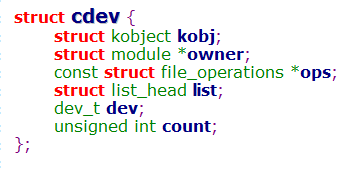 所以我們需要對(duì)所使用到的結(jié)構(gòu)成員進(jìn)行配置,驅(qū)動(dòng)開(kāi)發(fā)所使用到的結(jié)構(gòu)成員分別為:【unsigned int count;】、【dev_t dev;】、【const struct file_operations *ops;】。