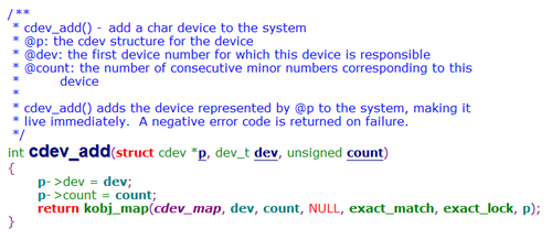 p:待添加到內(nèi)核中的字符設(shè)備結(jié)構(gòu),即為struct cdev。
