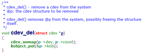 當(dāng)內(nèi)核中不再需要使用一個(gè)字符設(shè)備時(shí),我們可以在內(nèi)核中將相應(yīng)的設(shè)備驅(qū)動(dòng)程序進(jìn)行卸載。那么就需要對(duì)其字符設(shè)備進(jìn)行注銷(xiāo)。Linux內(nèi)核中為我們提供了cdev_del函數(shù)來(lái)完成字符設(shè)備的注銷(xiāo)。其原型如下: