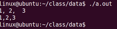 scanf()的格式控制串可以使用其它非空白字符例如a)、b)沒有問題,但在輸入時必須輸入這些字符并且位置與格式控制串相一致,如上c)例子,“,”號必須緊跟在輸入整數后,不能被空白字符隔開。