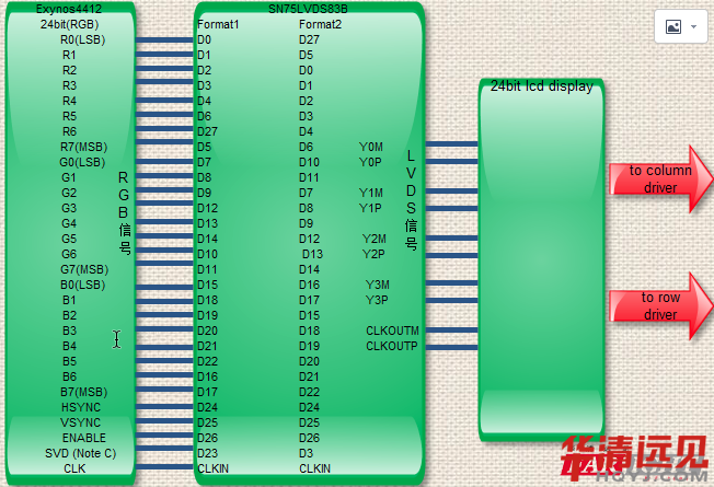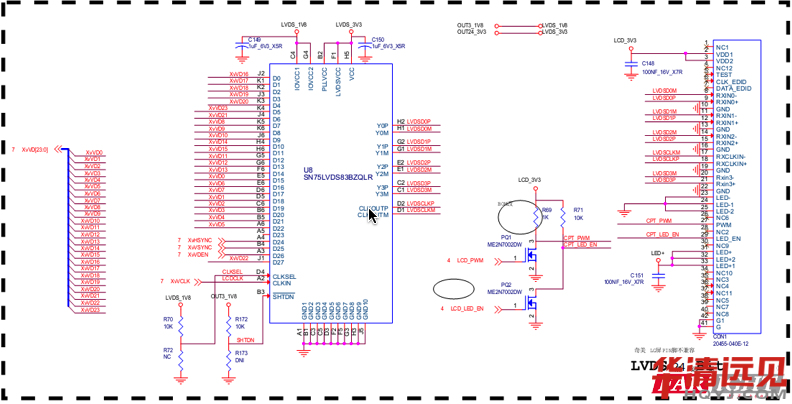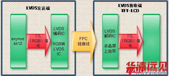 其實就是:把三星芯片輸出的TTL(RGB)信號轉換成LVDS差分信號輸出的LCD接收端。