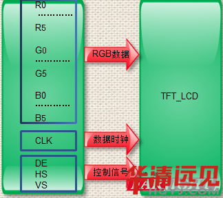 驅動板TTL輸出接口中一般包含RGB數據信號、時鐘信號和控制信號這三大類信號。如下圖所示:
