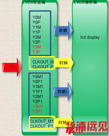 LVDS在傳輸分辨率較高的數據時,抗干擾能力比較強,可是1920X1080以上分辨率時,單路不堪重負,所以有雙路接口出現。目的很簡單,加快速度,增強抗干擾能力。
