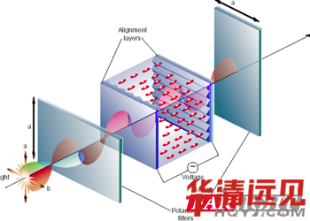 • 偏光板的特性:將非偏極光(一般光線)過(guò)濾成偏極光。當(dāng)非偏極光通過(guò)a方向的 偏光片時(shí),光線被過(guò)濾成與a方向平行的線性偏極光。當(dāng)然如果非偏極光通過(guò)b方向的偏光片時(shí),光線會(huì)被過(guò)濾成與b方向平行的線性偏極光。如下圖:圖1中非偏極光通過(guò)第一塊a方向的偏光片后,被過(guò)濾成a方向平行的線性偏極光,并且能順利通過(guò)第二張a方向的偏光片。圖2中非偏極光通過(guò)第一塊a方向的偏光片后,要通過(guò)第二塊偏光片時(shí),發(fā)現(xiàn)第二塊偏光片被旋轉(zhuǎn)了90度,此時(shí),就無(wú)法通過(guò)了。