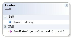 飼養員用Feeder類表示。由于三種動物吃的動物一樣,Feeder類必須擁有三個喂動物的公共方法: