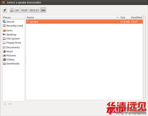 在彈出的對話框中選擇Qt移植后安裝路徑中的qmake工具,然后點擊Open按鈕。