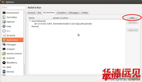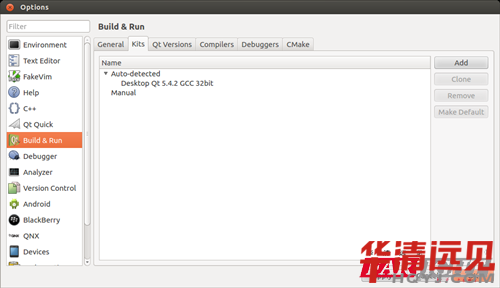 接下來添加構建套件,在剛才的對話框中選擇Kits選項卡,然后點擊Add按鈕。
