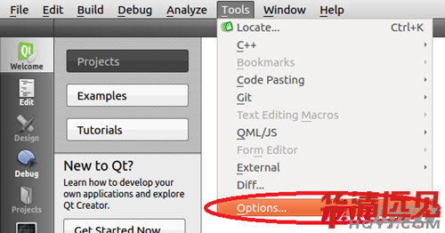 在集成開發(fā)環(huán)境中選擇Tools->Options子菜單。