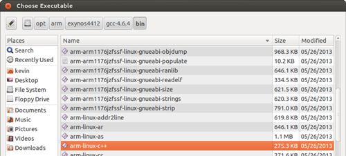 在彈出的對話框中選擇交叉編譯工具中的arm-linux-c++工具。