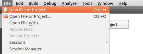 首先要建立一個Qt的工程,在集成開發(fā)環(huán)境中選擇File->New File or Project子菜單。