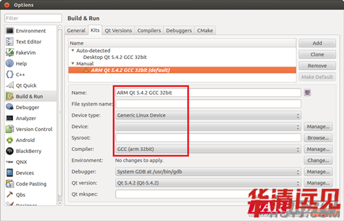 Qt集成開發(fā)環(huán)境安裝好后,默認只有PC機上的構建環(huán)境,需要手動添加 ARM平臺上的構建環(huán)境,添加的步驟如下。