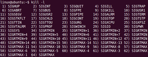 下面看內核空間有多少種信號 可以通過kill 加個選項-l 可以看到內核總共可以發送64種信號:數字代表信號的ID 后邊的宏代表他的功能,每個信號都有他的意義。