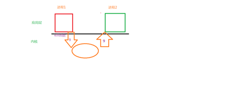 如果進程1想與進程2通過信號通信,不能通過用戶空間,它必須先告訴內核,讓內核告訴進程2 如圖所示: