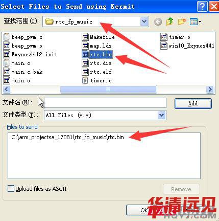 選擇文件工程中編譯生成的 .bin文件;并添加到files to send 列表;然后點(diǎn)擊OK