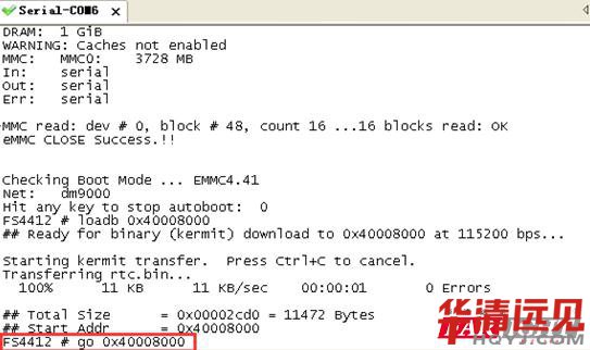 等到數(shù)據(jù)接收完畢后,執(zhí)行 # go 0x40008000 跳轉(zhuǎn)到下載代碼位置執(zhí)行。