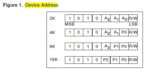 操作的設備的地址為0xa0 , 對應的是寫操作, 0xa1 對應的是讀操作