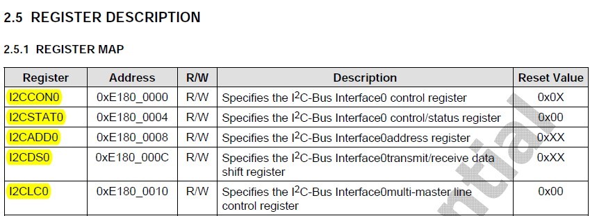 2.3 查看I2C控制器相應的章節,對相關的寄存器進行配置