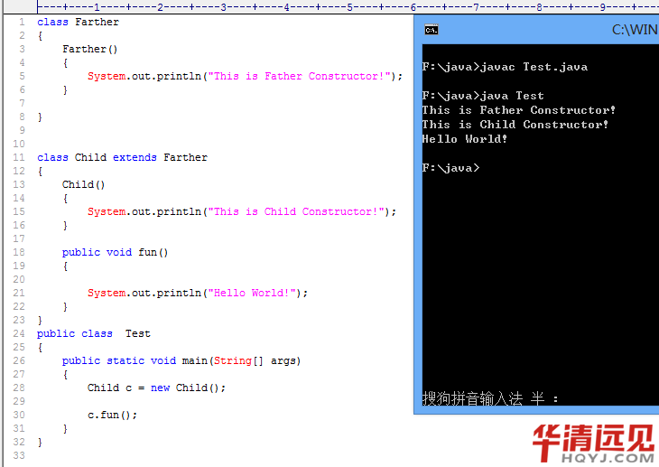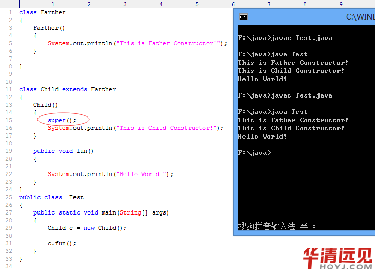 我們知道,使用new操作符,我們會(huì)調(diào)用類中相應(yīng)的構(gòu)造器,所以,在執(zhí)行"Child c = new Child(); "這條語句時(shí),我們應(yīng)該去調(diào)用子類中無參的構(gòu)造器,但是在子類Child中貌似沒有構(gòu)造器。這時(shí)大家要注意了,其實(shí)我們每個(gè)類中,實(shí)際上是有一個(gè)無參的構(gòu)造器的。但是,如果程序員自定義了構(gòu)造器,這時(shí)我們只能使用自己的構(gòu)造器。所以,這時(shí)也不難理解,為什么我們new子類實(shí)例,是沒有報(bào)錯(cuò)的了!所以,我們添上一個(gè)無參構(gòu)造器,結(jié)果也是一樣的。