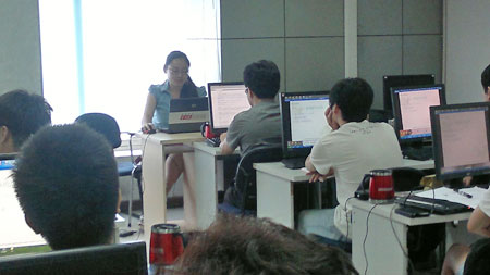 2011年6月18日下午13:30,華清遠見就業部組織的新老學員交流會在511教室隆重舉行。此次參加的老學員是華清遠見1001期學姐赫宗楠,現就職北京太格時代自動化系統設備有限公司。學姐在忙碌的工作中,抽出時間回“娘家”與大家團聚,分享工作的心得和成功的喜悅。