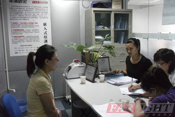 2012年6月26日,對華清遠見上海中心12021期的學員們來講又是一件難忘的經歷。就業主管胡老師有幸邀請到了上海航盛實業有限公司到華清遠見上海中心來現場招聘。雖然12021期學員還沒有畢業,但航盛實業的招聘人員早早的來選擇他們企業所需的人才。學員們也積極配合,都一大早來教室等候面試。