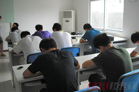 在學生對企業的背景有了一定的了解之后開始了正式的招聘環節,筆試是考核應聘者真正實力的時候,12121和13021的學員都認真答題,沉著應戰。在一個小時后的筆試環節后,徐總根據學員的大體情況當場挑選部分學員進行單獨面試,其中有六名學員成功進入復試環節。