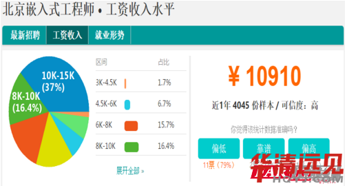 嵌入式系統是當前熱門、具發展前景的IT應用領域之一,很多數字、智能產品設備都是典型的嵌入式系統。目前嵌入式人才匱乏,一些權威部門統計,我國目前嵌入式軟件人才缺口每年為40萬人左右,嵌入式人才供給一直處于供不應求的狀態,所以很多人通過培訓或其他方式掌握了嵌入式技術,就能夠成為炙手可熱的專業人才。至于薪資水平且看招聘網站相關的數據(以北京為例):