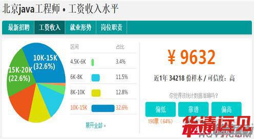相關人士稱,在未來發展中,java將會成為IT從業者必須掌握 一門語言,無論你對java是怎樣的態度,不可否認,java是心在全球時髦的開發工具之一,現在人們愈發相信,在今后的十年、二十年之內,Java都將是IT行業炙手可熱的技術,Java軟件工程師將持續成為熱門的崗位之一,JAVA的發展越來越好。薪資水平可以參照下面數據內容(以北京為例):