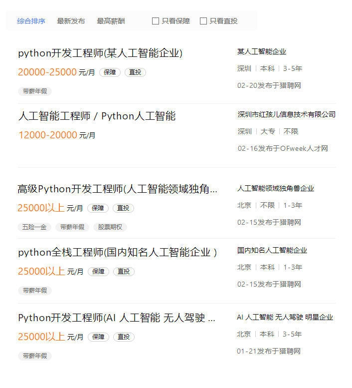 人工智能從業(yè)者薪資水平居IT行業(yè)首位。0 年經(jīng)驗(yàn)AI工程師年薪20萬起,算法工程師等 年薪40萬+。進(jìn)入國(guó)企/BAT機(jī)會(huì)