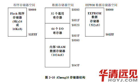 當(dāng)以SRAM方式尋址I/0寄存器時,必須將該其地址加上$0020,映射成在數(shù)據(jù)存儲器空間的地址。