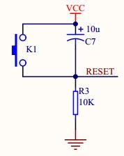 K1是按鈕,當(dāng)按鈕按下后,Reset引腳變成高電平,引發(fā)復(fù)位。