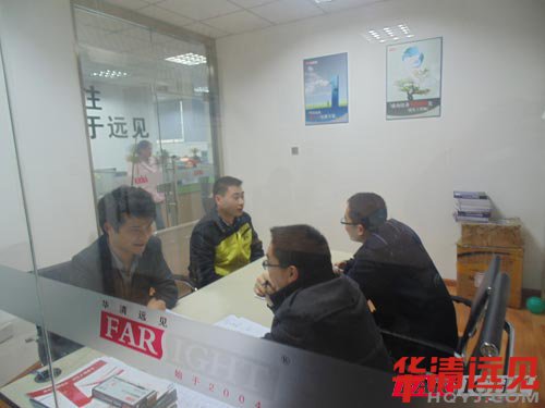 1月7日下午2點華為技術有限公司兩位技術面試官和軟通動力人事王小姐以及技術覃先生一行四人來到華清遠見成都中心。成都中心就業部龔老師和王老師熱情接待了他們,并向他們介紹了參加專場招聘人員的基本情況。