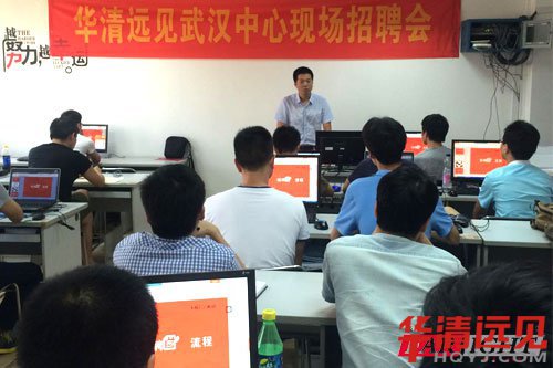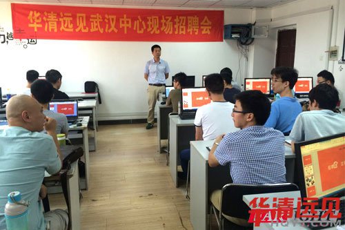 武漢方格信息技術有限公司(以下簡稱方格)聽說華為其他合作商在華清招聘了5位學員立馬聯系華清武漢中心就業老師陳老師要求舉行招聘會。于是2016年7月22日上午,方格負責人戴總,以及研發部門幾位負責人和人事專員在武漢華清遠見16031班教室,展開了一場招聘華清遠見學員的專場招聘會。